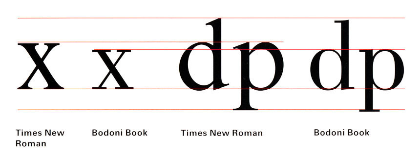 Inaltimea x este egala cu inaltimea literei mici „x” si determina marimea vizuala a tipului de caractere. Marimea inaltimii x variaza de la un tip de caractere la altul: unele tipuri, ca Bodoni, au o inaltime x mica, in timp ce Times New Roman are o inaltime x mare. In cadrul aceluiasi tip de caractere dimensiunea corpului este insa aceeasi. Tipurile de caractere cu inaltimea x mare tind sa aiba prelungiri superioare si inferioare mici, pe cind cele cu inaltimea x mica au prelungiri mari.